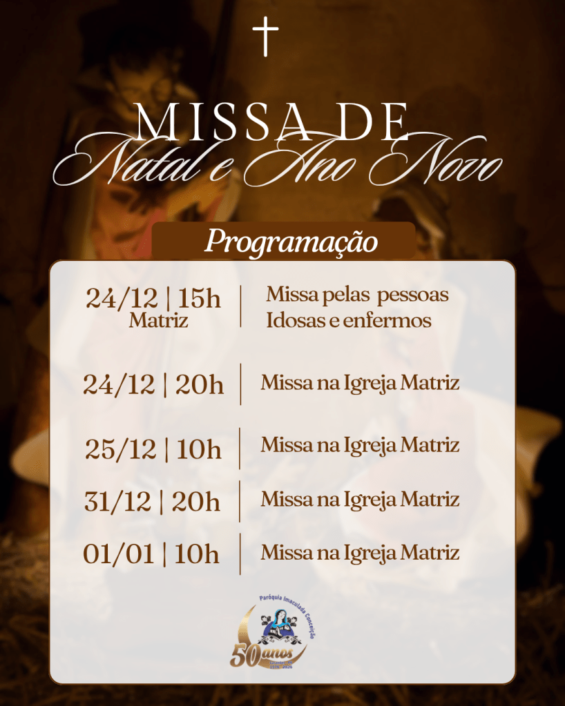 24/12 às 15h – Missa para as pessoas idosas e enfermos.